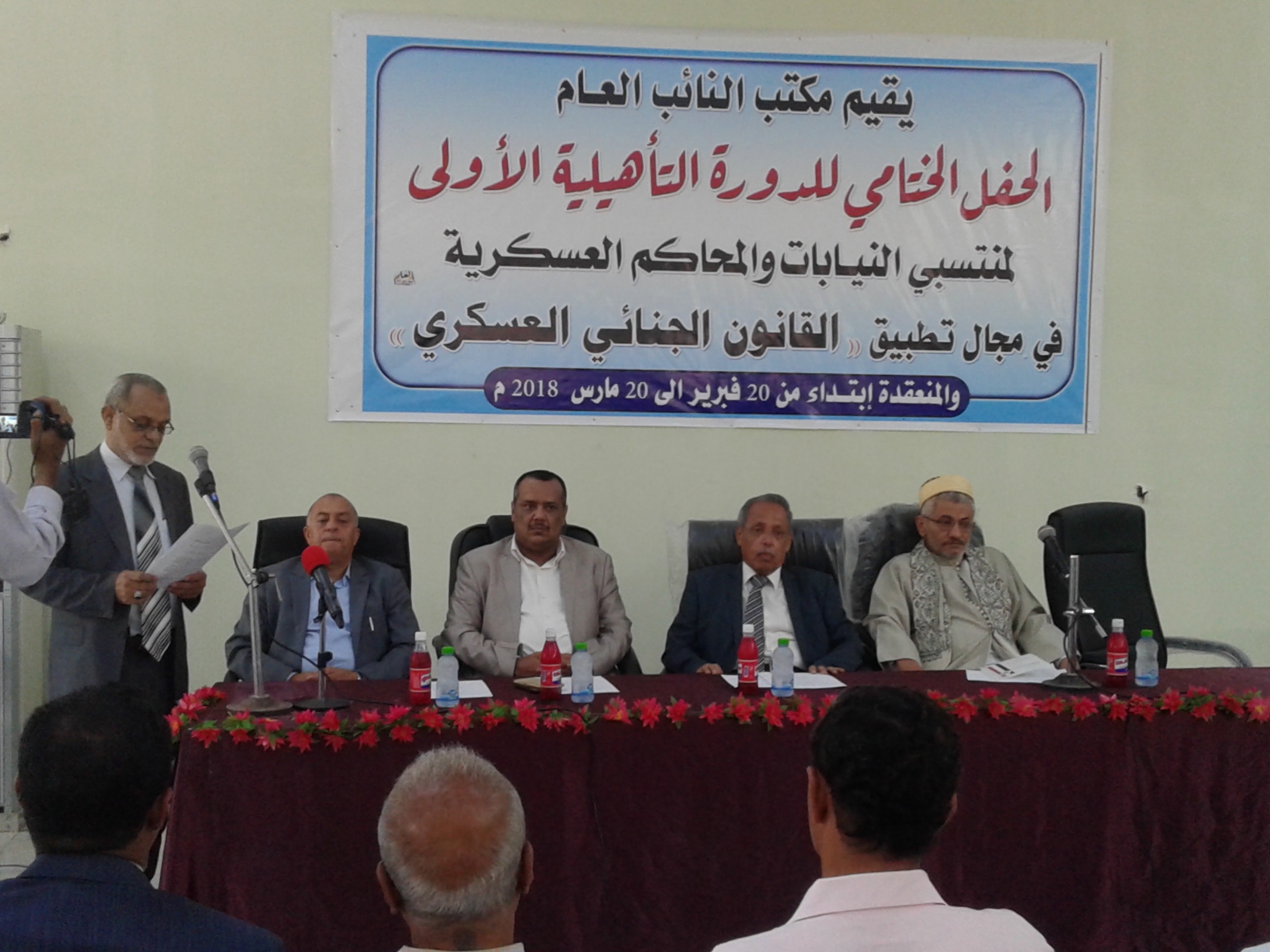 أختتمت صباح اليوم في مبنى النيابة العامة في العاصمة المؤقتة عدن الدورة التأهيلية للمرشحين للعمل بوظيفة مساعد نيابة عامة والتي بدأت في الاول من ديسمبر من العام الماضي 2018. وبمشاركة 120 مشارك ومشاركة.حضر اختتام الدورة القاض ...